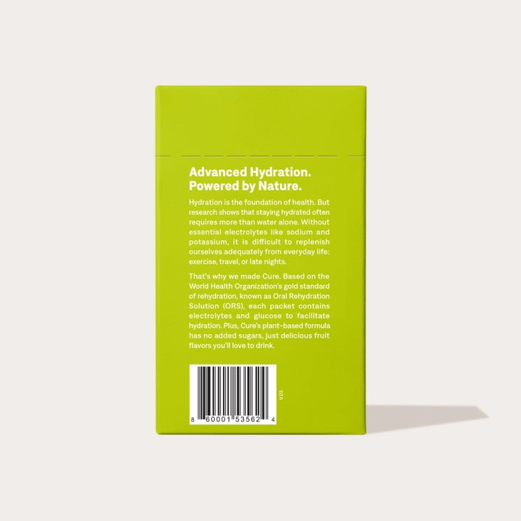 Stay hydrated the smarter way with Cure Hydration Electrolyte Drink Mix—a plant-based formula crafted with real ingredients, zero added sugar, and WHO-aligned electrolyte ratios for effective rehydration.