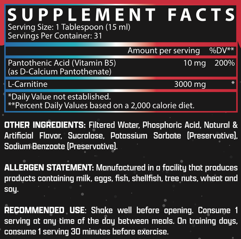 • 3,000mg L-Carnitine per Serving – A high-potency formula to support fat-to-energy conversion.