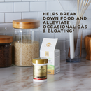 Taken daily, each serving offers 20 billion CFUs of a well-studied probiotic strain and three digestive enzymes, which helps: